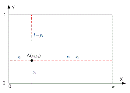 return min(min(x[i], y[i]), min(l - y[i], w - x[i]));