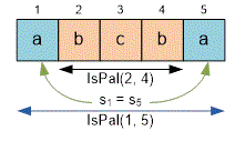 return pal[i][j] = (s[i] == s[j]) && IsPal(i+1,j-1);