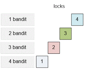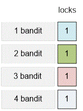 The keys to this lock are given to all the remaining bandits; that is, the keys are received by bandits.