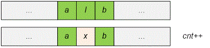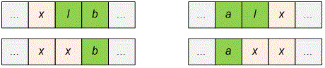 We start a new stripe of letters. We assume that at position a new stripe of exactly (or more) letters ends, consisting of the letter . To do this:
