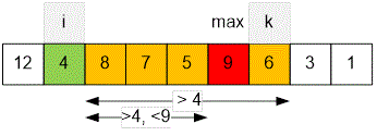Thus, for each index , we need to find the largest possible index , and then, among all obtained pairs , determine the maximum difference .