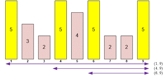 }The RangeMaxQuery function returns the index of the maximum element in the subsegment .